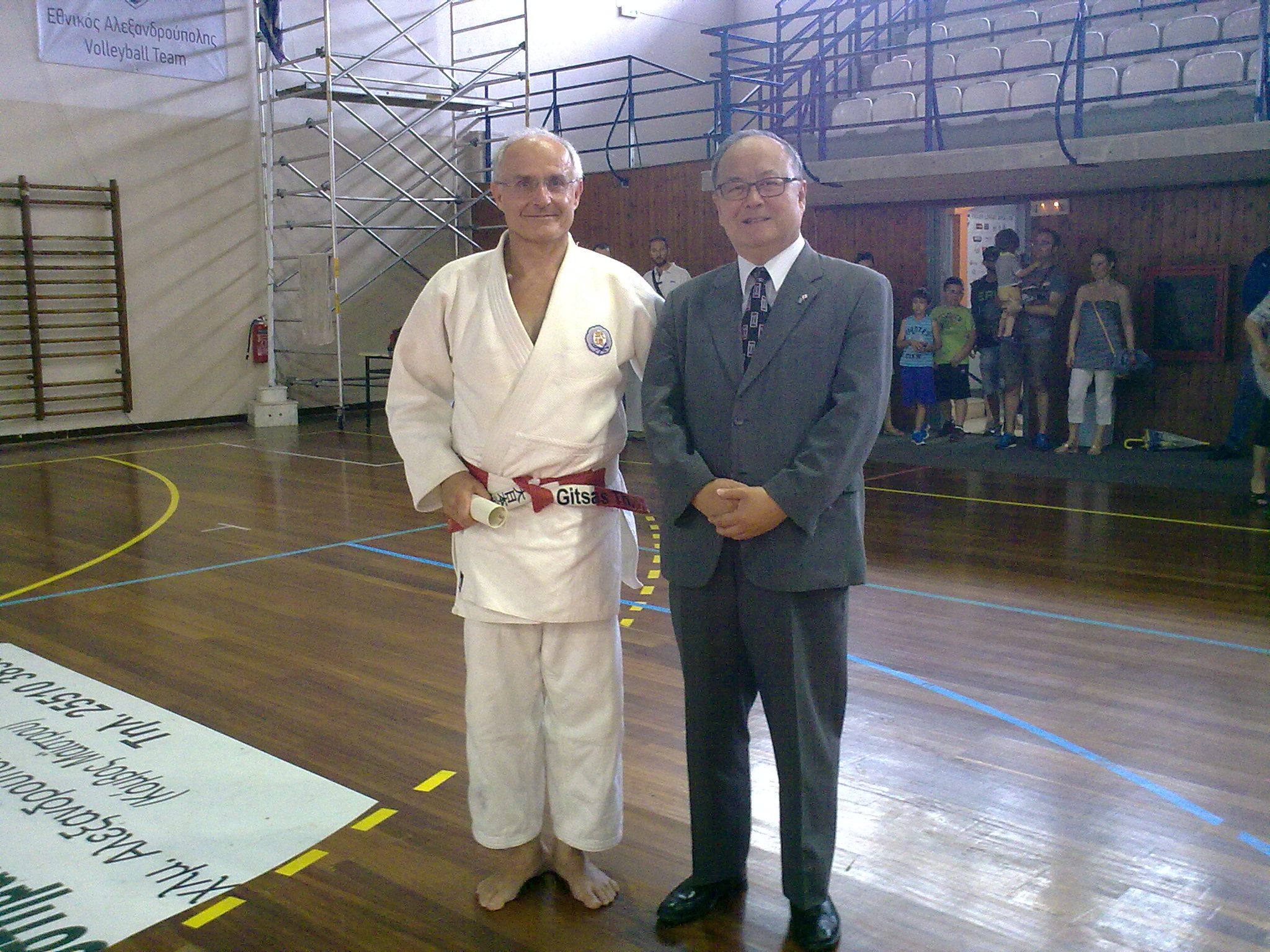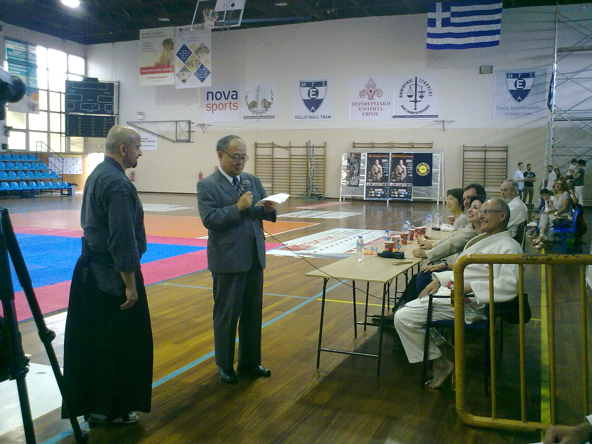 Ο Ιάπωνας πρέσβης στην Ελλάδα κύριος Masuo Nishibayashi, κατά την ομιλία του στο XIII embu tai-kai το 2016 στην Αλεξανδρούπολη. Όρθιος δίπλα του, ο κύριος Καρυπίδης Κωνσταντίνος, τεχνικός διευθυντής του Ελληινκού Συνδέσμου Ιαπωνικών Πολεμικών Τεχνών.