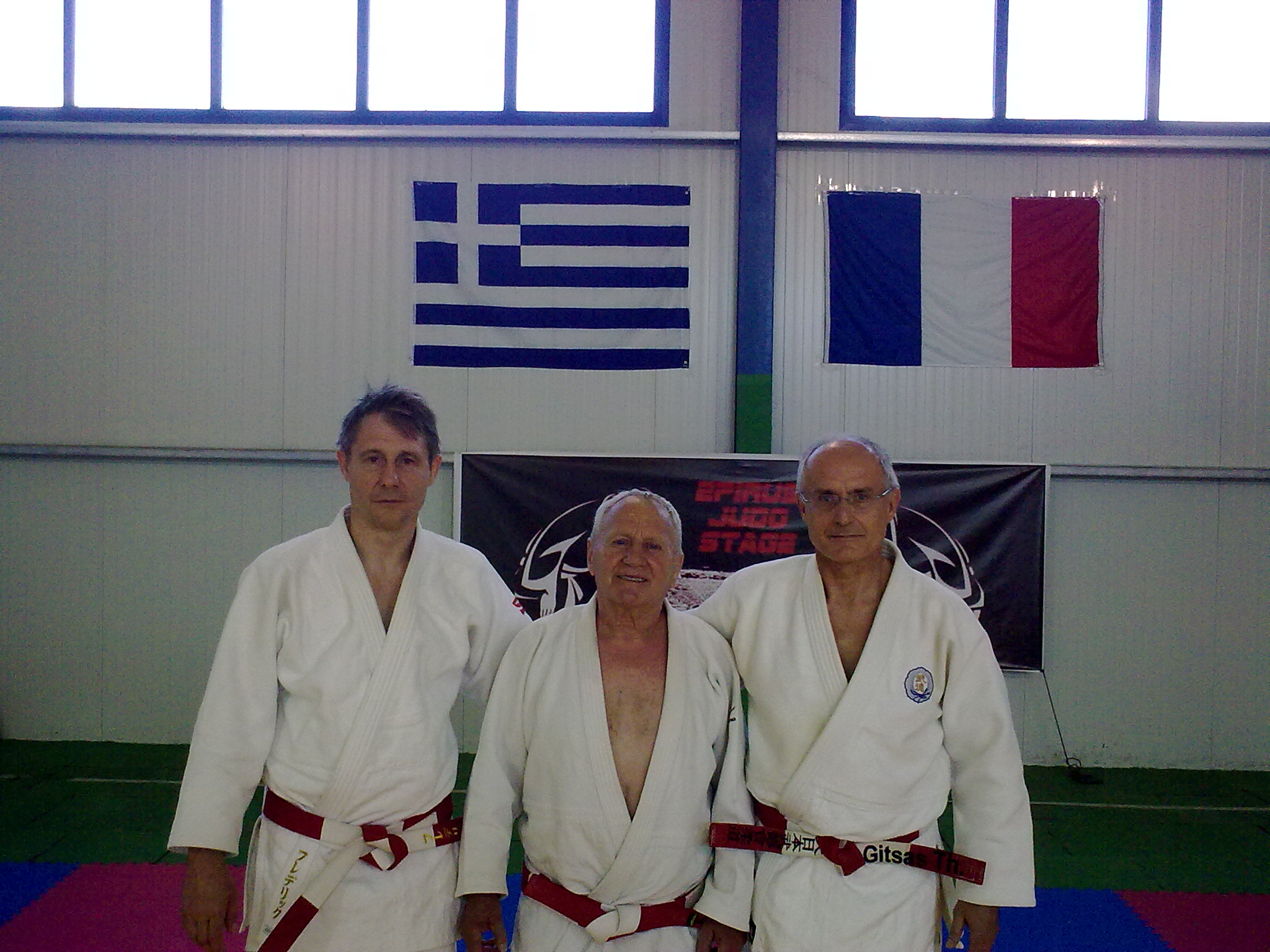 Θεόφιλος Γκίτσας (δεξιά), με τον δάσκαλό τους Serge Videau (κέντρο) μετά την λήξη του Judo Epirus Stage 2107.